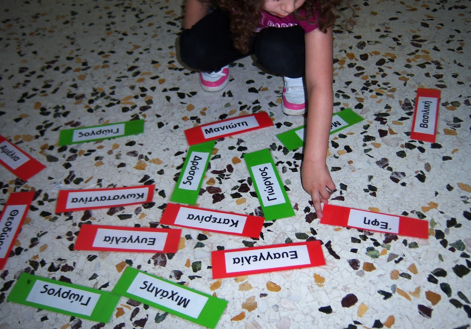 Καρτέλες με τα ονόματα των παιδιών, κάθε παιδί να αναγνωρίζει το όνομα του , αντιστοίχηση με φωτογραφίες και με το πρώτο γράμμα του ονόματος και να γράφουν το όνομα τους